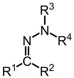 MAKE A MEME View Large Image Hydrazone general structure.svg v Genaral Structure of Hydrazone Author Su-no-G Source Own work Date 14 Feb 2007 Made with ChemDraw