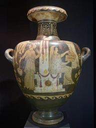 | Keywords: Hydria MACatalunya Inv11246.jpg South Italian hydria with female scenes a seated woman holding a casket a servant nearby handing a red ribbon; a standing woman holding a mirror and talking to a naked youth From Empúries ancient Emporion century 4 BC red-figure pottery Institution Museu d'Arqueologia de Catalunya Barcelona object history credit line accession number Inv 11246 own photo date 2015-01-22 User Jastrow/cc-by-2 5 artwork license PD-old-100 photo license Cc-by-2 5 other versions Ancient Greek pottery hydriai Red-figure pottery in Spain Ancient Greek art in the Museu d'Arqueologia de Catalunya Barcelona Taken with AF-S Zoom-Nikkor 24-70mm f/2 8G ED Taken with Nikon D800E |