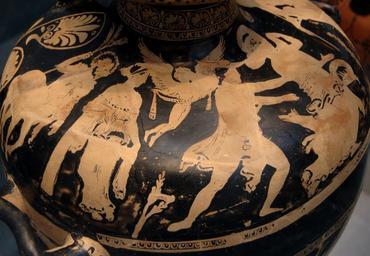 | Keywords: Hydria Peleus Thetis 370 BC Staatliche Antikensammlungen n1.jpg Peleus verfolgt Thetis die sich in Seedrache und Hund verwandelt Links Chiron Freund des Peleus und Aphrodite die Eros mit einer Siegerbinde sendet Rotfigurig apulische Hydria um 370 v Chr Peleus pursues Thetis who shapeshifts in sea-monster and dog Left Chiron friend of Peleus and Aphrodite sending Eros with a victory band Apulian red-figure hydria ca 370 BC Pélée poursuivant Thétis qui se change en monstre marin et en chien à gauche Chiron ami de Pélée et Aphrodite envoyant Éros avec un bandeau de victoire Hydrie apulienne à figures rouges v 370 av J -C Museum Staatliche Antikensammlungen Room 4 object history credit line accession number User Bibi Saint-Pol own work 2007-02-13 other versions <gallery> Image Hydria Peleus Thetis 370 BC Staatliche Antikensammlungen n2 jpg </gallery> Aphrodite in ancient Greek pottery Chiron in ancient Greek pottery Eros in ancient Greek pottery Rape of Thetis Dogs in ancient Greek pottery Creatures of Greek mythology Ancient Greek pottery hydriai Apulian red-figure pottery Red-figure pottery in the Staatliche Antikensammlungen Staatliche Antikensammlungen - Room 4 370s BC pottery Thetis in ancient Greek pottery Peleus in ancient Greek pottery |