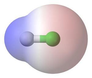 | Keywords: Hydrogen-chloride-elpot-transparent-3D-balls.png A van der Waals' surface coloured according to charge superimposed on a ball-and-stick model of the hydrogen chloride molecule HCl Red represents partially negatively charged regions blue represents partially positively charged regions and white represents neutral uncharged regions Created in Accelrys DS Visualizer 1 5 edited with Photoshop Elements 3 0 Own 2007-11-23 Ben Mills Benjah-bmm27 Images by Ben Mills Hydrogen chloride Molecular electrical potential surfaces |