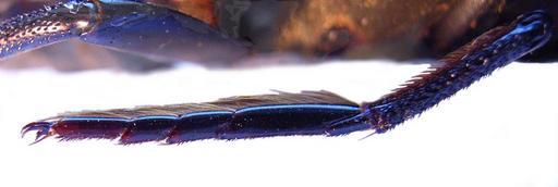 Keywords: Hydrous piceus middle tibia.jpg middle tibia of Hydrous piceus photo made by myself 2007-03-26 Siga public domain Hydrophilus piceus anatomy Coleoptera legs
