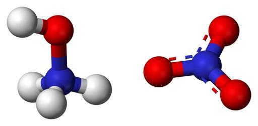 MAKE A MEME View Large Image Hydroxylammonium-nitrate-3D-balls-ionic.png Ball-and-stick model of the hydroxylammonium nitrate molecule the hydroxylamine salt of nitric acid which is being developed as a potential rocket fuel Showing two hydroxylammonium ions and one ...