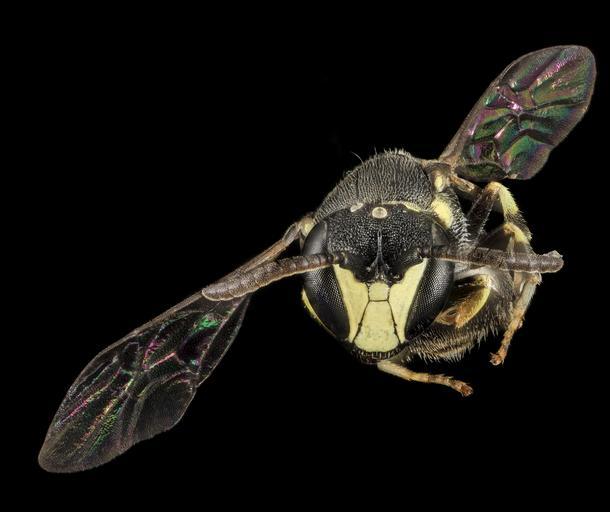 | Keywords: bug bugs bee bees pollinator pollinators animal animals animalia arthropod arthropods arthropoda insect insects insecta hymenoptera aculeata anthophila apoidea colletidae yellow-masked bee yellowmaskedbee yellow-masked bees yellowmaskedbees hylaeus hylaeus floridanus hylaeusfloridanus taxonomy:binomial=hylaeus floridanus taxonomy:binomial=hylaeusfloridanus biml usgs droege sandhill north carolina northcarolina black background usgsbiml black background In rough translation this would be the "Florida Masked Bee." Tiny, grain of rice things, and usually mistaken for wasps as they carry their pollen internally rather than in their body hairs like other bees. Thus they have reverted to the wasp shape from whence bees came. This is a rare species collected by Heather Campbell as part of her survey of a sandhill area of North Carolina. I enjoy the crispness of the these bees, their alien eye glamour, and the color pop of the interference patterns in their wings and their Photo by Wayne Boo Canon Mark II 5D, Zerene Stacker, 65mm Canon MP-E 1-5X macro lens, Twin Macro Flash, F5.0, ISO 100, Shutter Speed 200, link to a .pdf of our set up is located in our profile In rough translation this would be the "Florida Masked Bee." Tiny, grain of rice things, and usually mistaken for wasps as they carry their pollen internally rather than in their body hairs like other bees. Thus they have reverted to the wasp shape from whence bees came. This is a rare species collected by Heather Campbell as part of her survey of a sandhill area of North Carolina. I enjoy the crispness of the these bees, their alien eye glamour, and the color pop of the interference patterns in their wings and their Photo by Wayne Boo Canon Mark II 5D, Zerene Stacker, 65mm Canon MP-E 1-5X macro lens, Twin Macro Flash, F5.0, ISO 100, Shutter Speed 200, link to a .pdf of our set up is located in our profile |