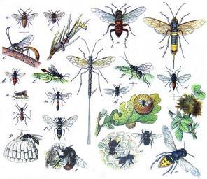 | Keywords: Hymenoptera Vielfalt.jpg en Bearbeiteter Ausschnitt Hautflügler der Tafel XXV<br>a Athalia rosae b Diprion pini c Cimbex femoratus d Urocerus gigas e Therion circumflexum f Ephialtes manifestator g Cotesia glomerata h Cynips quercusfolii i Diplolepis rosae k Chrysis ignita l Ammophila sabulosa m Trypoxylon figulus n Anoplius viaticus o Formica rufa p Ancistrocerus parietum q Vespula vulgaris r Vespa crabro s Apis mellifera t Bombus lapidarius Naturgeschichte des Tierreichs Heinrich von Schubert et al 1886 Unidentified Hymenoptera Cimbex femoratus PD-old |