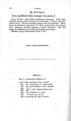 | Keywords: HymenopteraBritannicaBraconidaeBrittanicaPage26.jpg en Haliday A H 1839 Hymenoptera Britannica Oxyura et Alysia London Balliére Fasc 1 15 Fasc 2 28 et 4 Hymenoptera Britannica Scan A H Haliday 1839 Hymenoptera Britannica Oxyura et Alysia PD-old-100 |