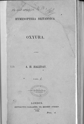Keywords: HymenopteraBritannicaFrontis.jpg en Hymenoptera Britannica Hymenoptera Britannica Scan A H Haliday 1839 Hymenoptera Britannica Oxyura et Alysia PD-old-100