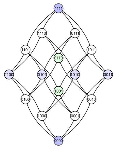 | Keywords: Hypercubematrix binary.svg Tesseract Hasse diagram The vertices are arranged like the fields of a 4x4 matrix Inkscape own Mate2code Compare 200px 200px Tesseract Hasse diagrams 4x4 matrices representing tesseracts Colored nibbles blue green white |