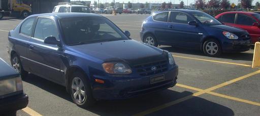Keywords: Hyundai Accent Hatchbacks.JPG 2003-2006 left 2007-present right Hyundai Accents photographed in Vaudreuil-Dorion Quebec Canada Own 09/19/08 Bull-Doser All Rights Released Hyundai Accent LC Hyundai Accent MC