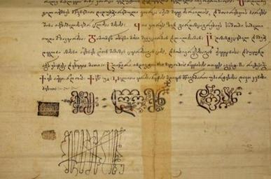 | Keywords: სოლომონ I-ის სიგელი, 1772 წელი.jpg en Royal charter of King Solomon I of Imereti 1772 ქუთაისის ისტ რიული მუზეუმი ქუთაისის ისტ რიული მუზეუმი Solomon I of Imereti signature svg 50 Custom license marker 2014 09 18 PD-Art-100 Uploaded with UploadWizard Solomon I of Imereti Mkhedruli royal charters |