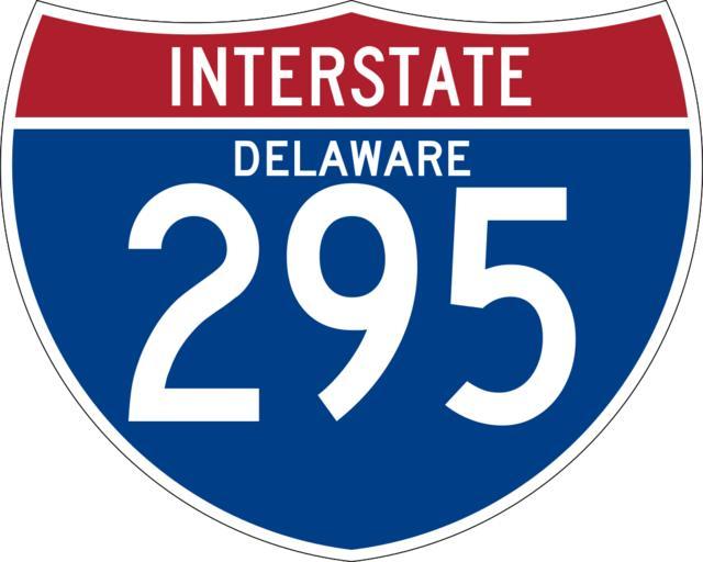 Keywords: I-295 (DE).svg 750 mm by 600 mm 30 in by 24 in Interstate shield made to the specifications of the http //mutcd fhwa dot gov/SHSm/Guide pdf 2004 edition of Standard Highway Signs sign M1-1 Uses the http //www triskele com/fonts/index html Roadgeek 2005 fonts United States law does not permit the copyrighting of typeface designs and the fonts are meant to be copies of a U S Government-produced work anyway Colors are from http //mutcd fhwa dot gov/kno-colorspec htm Pantone Red 187 and Blue 294 converted to RGB by http //www reeddesign co uk/test/pantone2rgb html The outside border has a width of 1 1 mm and a color of black so it shows up; in reality signs have no outside border own Ltljltlj User Ltljltlj/Template Three-digit Interstate Highway shields with name of state 95-2 Delaware Interstate 295 Delaware “New Jersey |