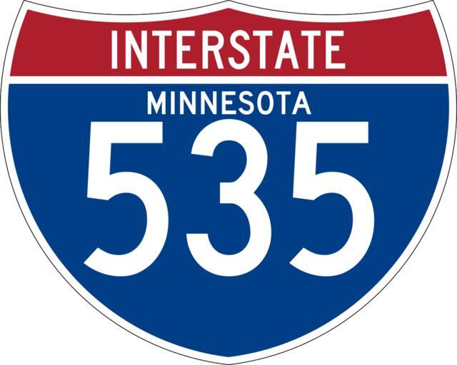 | Keywords: I-535 (MN).svg 750 mm by 600 mm 30 in by 24 in Interstate shield made to the specifications of the http //mutcd fhwa dot gov/SHSm/Guide pdf 2004 edition of Standard Highway Signs sign M1-1 Uses the http //www triskele com/fonts/index html Roadgeek 2005 fonts United States law does not permit the copyrighting of typeface designs and the fonts are meant to be copies of a U S Government-produced work anyway Colors are from http //mutcd fhwa dot gov/kno-colorspec htm Pantone Red 187 and Blue 294 converted to RGB by http //www reeddesign co uk/test/pantone2rgb html The outside border has a width of 1 1 mm and a color of black so it shows up; in reality signs have no outside border own Ltljltlj User Ltljltlj/Template Three-digit Interstate Highway shields with name of state 35-5 Minnesota 535 number Minnesota Interstate Highway shields SVG road signs in Minnesota |