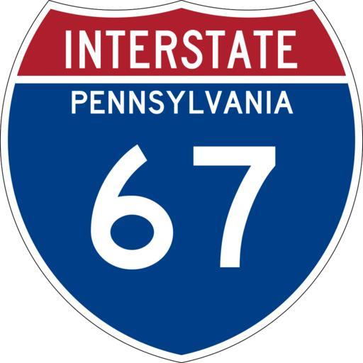 Keywords: I-67 (PA) Metric.svg en 600 mm by 600 mm 24 in by 24 in Interstate shield metric version made to the specifications of the http //mutcd fhwa dot gov/SHSm/Guide pdf 2004 edition of Standard Highway Signs sign M1-1 Uses the http //www triskele com/fonts/index html Roadgeek 2005 fonts United States law does not permit the copyrighting of typeface designs and the fonts are meant to be copies of a U S Government-produced work anyway Colors are from http //mutcd fhwa dot gov/kno-colorspec htm Pantone Red 187 and Blue 294 converted to RGB by http //www reeddesign co uk/test/pantone2rgb html The outside border has a width of 1 1 mm and a color of black so it shows up; in reality signs have no outside border Own T2 2009-07-31 Interstate Highway shields with name of state Metric 67 Pennsylvania |