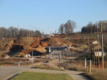 | Keywords: monroe county monroecounty i-69 i69 interstate 69 interstate69 indiana road interstate construction highway infrastructure i-69 development partners i69developmentpartners isolux corsán usa isoluxcorsánusa con/span conspan Construction of the 17th Street/Vernal Pike overpass in Monroe County, Indiana; looking east. In the background is the 4-column median pier for the bridge over State Road 37/future Interstate 69. 17th Street/Vernal Pike will come down the hill and over the bridge structure (called a Con/Span® bridge), then curve slightly northwest (left) to link up with Vernal Pike, which is the road in the foreground. The road does not align straight become there is a major underground utility structure near the Con/Span bridge structure. I-69 Development Partners; Isolux Corsán USA (Indiana I-69 Corridor Project, Section 5). Construction of the 17th Street/Vernal Pike overpass in Monroe County, Indiana; looking east. In the background is the 4-column median pier for the bridge over State Road 37/future Interstate 69. 17th Street/Vernal Pike will come down the hill and over the bridge structure (called a Con/Span® bridge), then curve slightly northwest (left) to link up with Vernal Pike, which is the road in the foreground. The road does not align straight become there is a major underground utility structure near the Con/Span bridge structure. I-69 Development Partners; Isolux Corsán USA (Indiana I-69 Corridor Project, Section 5). |