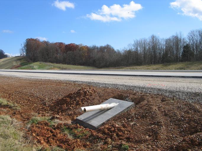 | Keywords: i-69 i69 interstate 69 interstate69 indiana monroe county monroecounty road interstate construction freeway infrastructure drainage piping drainagepiping drainage e. s. wagner co. eswagnerco headwall drainage outlet drainageoutlet An Interstate 69 drainage outlet with concrete headwall near Lodge Road in Monroe County, Indiana; looking southeast. This piping serves to drain water from the road's subbase. To finish construction, the PVC piping will be cut flush with the headwall, and animal guards inserted into the tubes. E. S. Wagner Co., prime contractor (Indiana I-69 Corridor Project, Section 4, Segment 8). An Interstate 69 drainage outlet with concrete headwall near Lodge Road in Monroe County, Indiana; looking southeast. This piping serves to drain water from the road's subbase. To finish construction, the PVC piping will be cut flush with the headwall, and animal guards inserted into the tubes. E. S. Wagner Co., prime contractor (Indiana I-69 Corridor Project, Section 4, Segment 8). |