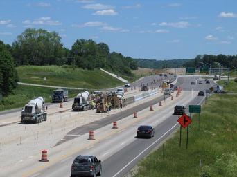 MAKE A MEME View Large Image Indiana I-69 Corridor Project, Section 5; near Fullerton Pike work zone, Monroe County, Indiana Crews work to construct the concrete median barrier just north of the Interstate 69/State Road 37 interchange in Monroe County, Indiana; looking ...