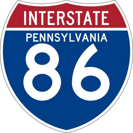 | Keywords: I-86 (PA).svg en 600 mm by 600 mm 24 in by 24 in Interstate shield made to the specifications of the http //mutcd fhwa dot gov/SHSm/Guide pdf 2004 edition of Standard Highway Signs sign M1-1 Uses the http //www triskele com/fonts/index html Roadgeek 2005 fonts United States law does not permit the copyrighting of typeface designs and the fonts are meant to be copies of a U S Government-produced work anyway Colors are from http //mutcd fhwa dot gov/kno-colorspec htm Pantone Red 187 and Blue 294 converted to RGB by http //www reeddesign co uk/test/pantone2rgb html The outside border has a width of 1 1 mm and a color of black so it shows up; in reality signs have no outside border Own Jeff02 2008-08-30 Interstate Highway shields with name of state 86 Pennsylvania 86 number |