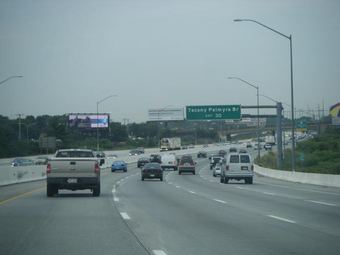 | Keywords: I-95 SB 1 mi to PA 73 2.JPG Southbound Interstate 95 1 mile from the exit for Pennsylvania Route 73 exit 30 in Philadelphia Pennsylvania with sign advising motorists to use that exit to get to the Tacony Palmyra Bridge Own 2008-07-23 Dough4872 Interstate 95 in Philadelphia Pennsylvania |
