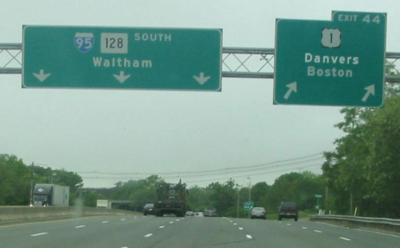Keywords: I-95 south exit 44.jpg I-95 south at exit 44 in Massachusetts Taken May 26 2004 by SPUI own SPUI spuiphoto Interstate 95 in Massachusetts Massachusetts Route 128 U S Route 1 in Massachusetts Road sign gantries in Massachusetts