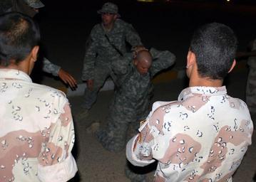 | Keywords: IA, Gimlet MiTT conduct cache search during Operation Gimlet Tidal Wave DVIDS120914.jpg en Iraqi army soldiers from Commando Company 4th Battalion 24th Brigade 6th IA Division look on Oct 3 2008 as Spc Aaron Taylor a Billings Mont native demonstrates how to detain and search a suspect on Maj Robert Risdon Jr a Chicago native and team chief of the Military Transition Team attached to 1st Battalion 21st Infantry Regiment 2nd Striker Brigade Combat Team 25th Infantry Division Multi-National Division “ Baghdad at Forward Operating Base Constitution 2008-10-03 Sgt Benjamin Crane https //www dvidshub net/image/120914 120914 2008-10-08 14 01 BAGHDAD IQ PD-USGov 21st Infantry Regiment United States 25th Infantry Division United States Images from DoD uploaded by Fæ |