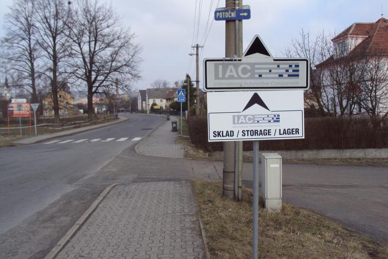 Keywords: IAC cedule.jpg cs Směrovka v Mimoňské ulici k firmě IAC na druhém konci Zákup own Zákupák 2011-03-23 Mimoňská Zákupy Manufacturing tablets IAC Zákupy