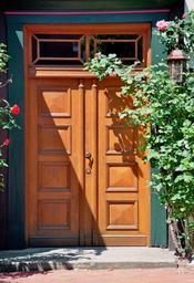 | Keywords: Ibbenbueren Bachstrasse 10 3.jpg en Door of former Haus Sweering a timber framed house in the city centre of Ibbenbüren Kreis Steinfurt North Rhine-Westphalia Germany It is a listed cultural heritage monument de Ansprechende Holztür des Ackerbürgerhauses Sweering Bachstraße 10 in Ibbenbüren Kreis Steinfurt Nordrhein-Westfalen Deutschland Das laut Denkmalliste stadtbildprägende Fachwerkgebäude in der südlichen Innenstadt stammt aus dem 18 Jahrhundert Es ist das Stammhaus der Familie Sweering 1818 gründete Johann Heinrich Sweering dort eine Leinenweberei die spätere Kleider- und Wäschefabrik J H Sweering Co Das Haus Sweering wurde 1980 völlig umgebaut und saniert Seit 1984 steht das vormalige Bauernhaus unter Denkmalschutz Dieser beschränkt sich jedoch auf Außenhaut und Dachflächen Ibbenbüren A 003 own J -H Janßen 2010-06 Haus Sweering Ibbenbüren Unidentified Rosa cultivars Doors in Ibbenbüren 2010 in Ibbenbüren 201006 Ibbenburen June 2010 in Germany 201006 Ibbenburen Bilder von J -H Janßen Cc-zero |
