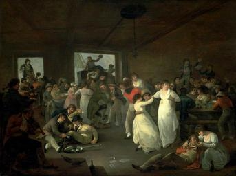 | Keywords: Ibbetson-SailorsCarousing.jpg Artwork Creator Julius Caesar Ibbetson A scene in an unspecified tavern at Portsmouth after one or more ships have been paid off The painting may be a retrospective celebration of the Battle of the Glorious First of June 1794 since although executed much later and after Ibbetson had moved to the north of England it reuses elements of a watercolour by him showing a similar scene and dated 3 July 1794 The room is crowded with sailors and men and women carousing The ceiling floors and walls enclose the action and a single lamp hangs from the ceiling to the right The outline of a carriage with several revellers alighting or departing frames the door on the right The opening to the left shows a seaman wearing a hat and chain with a boatswain's whistle borne aloft on a chair Two bare-headed women are highlighted in the foreground the one to the right has two men paying attention to her and the woman on the left sits on a sailor's knee Impropriety is implied in their conduct Although sailor's pay was low and often in arrears prize money provided welcome bonuses after victorious actions but it was rarely saved The narrative indicates a group of three seamen in the foreground to the left of centre both pretending to fry their watches or play 'conkers' with them This refers back to a celebrated incident in 1762 when after capturing a Spanish galleon seamen of the 'Active' and 'Favourite' were so loaded with prize money that they were recorded as frying watches as shown One of the women in the foreground wears a watch around her waist 1802 oil panel cm 43 2 58 4 National Maritime Museum object history credit line National Maritime Museum Greenwich London Caird Collection accession number BHC1090 http //www nmm ac uk/collections/nelson/viewObject cfm ID BHC1090 National Maritime Museum PD-old-100 Julius Caesar Ibbetson 1802 paintings Paintings in the National Maritime Museum London |