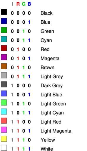 | Keywords: IBM16 Palette-en.svg en This is a 48-bit PNG image describing the MC6845 video controller's palette used in the IBM PC's CGA text mode and EGA two graphics modes The colours used for the palette squares are precise 16-bit values of the MC6845's range 0 2<sup>n</sup>-1 3 2<sup>n</sup>-1 3ยท2 2<sup>n</sup>-1 effectively 0000 5555 AAAA and FFFF own XFig source file at http //roker dingens org/wikipedia/IBM16_Palette-en fig RokerHRO 2009-11-27 Inspired by File IBM16Palette-48bit png Computer graphic color codes Color palettes Colors SVG colors |