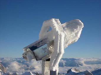 Keywords: ice cold icy winter snow white ice formations telescope view viewpoint foresight overview watch sky lookout