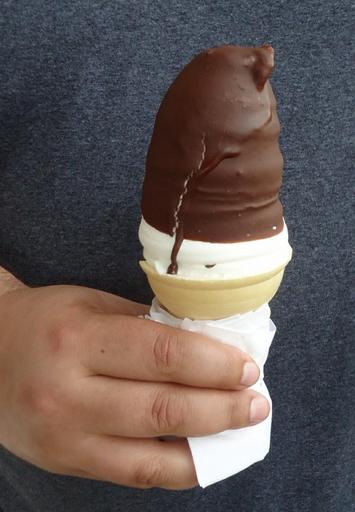 Keywords: Ice cream cone chocolate dipped held in hand.jpg en A freshly made soft ice cream cone from Dairy Queen dipped in chocolate topping 2012-06-24 own Tomwsulcer cc-zero Uploaded with UploadWizard Ice cream wafer cones Human hands holding ice cream Chocolate glaze |