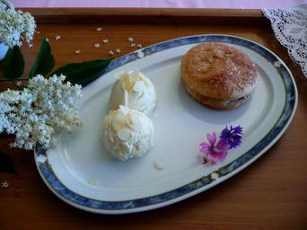 Keywords: ice cream dessert food cake flower elder almond