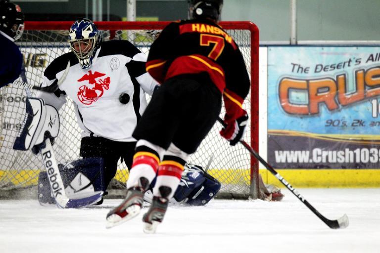 Keywords: ice hockey goalie goal sport team helmet game sticks puck mask action goalkeeper competition goaltender arena play player net skating ali azimi skate