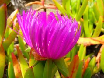 Keywords: ice plant blossom bloom red pink bloom succulent flower nature
