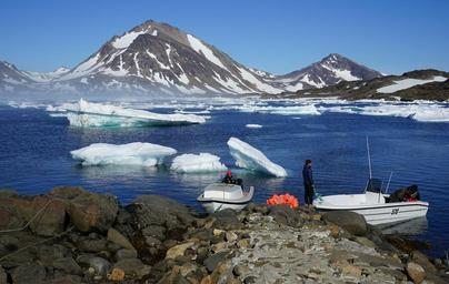 Keywords: icebergs boats mountains cold landscape greenland