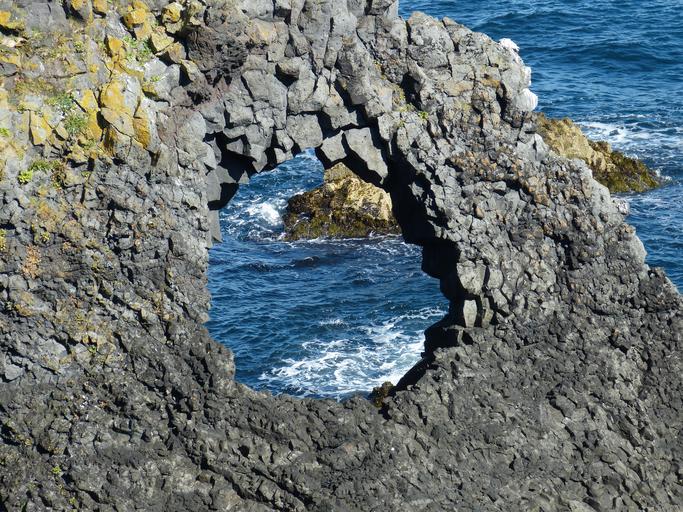 Keywords: iceland coast atlantic sea cliff ocean nature rock rocky coast volcanic rock volcanic snaefellness snæfellsnes peninsula hole opening