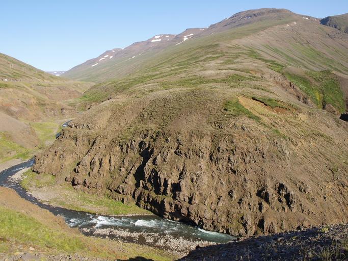 Keywords: iceland riverbed river valley landscape mountains hill