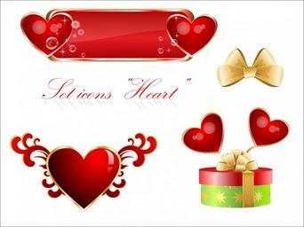 Keywords: icon banner illustration set sticker love romance valentine's day red gold gift bows stars transparent