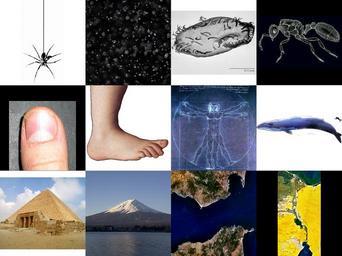 | Keywords: Icons 1e-6m to 1e5m squares 512pixel.png orders of magnitude The component thumbnails are squares each of width 512 pixels See example use below for links to articles derived from public domain images on English Wikipedia and Commons by me 84user using w en IrfanView Source images and their authors thumb left 128x128px 1e-6m NASA PD-USGov w en File FogParticlesHighSpeed jpg 1e-5m Fog image from English wikipedia released by w en User Ben_pcc thumb left 128x128px 1e-4 PD-USGov thumb left 128x128px 1e-3m released by User Halvard w en Image Fingernail label jpg 1e-2m released on English wikipedia by w en User Kipton thumb left 128x128px 1e-1m painted by Agnolo di Cosimo aka Agnolo Bronzino 1503 - 1572 Authored by User Husky thumb left 128x128px 1e0m drawn by Leonardo da Vinci circa 1492 photographed by Luc Viatour 2007 thumb left 128x128px 1e1m released by User Lamiot thumb left 128x128px 1e2m released by Jon Bodsworth from http //www egyptarchive co uk/html/contact html thumb left 128x128px 1e3m released by User Fg2 thumb left 128x128px 1e4m NASA World Wind screenshot PD-WorldWind thumb left 128x128px 1e5m WorldWind Landsat 7 30 55N 32 28E boosted colours PD-WorldWind 2009-04-18 User 84user Public domain in United States but see Source above and Licensing below thumb left with smaller 75 pixel squares thumb center with smaller 64 pixel squares thumb left with smaller 48 pixel squares en English Wikipedia Ben pcc en English Wikipedia Kipton Halvard Husky Lamiot Jon Bodsworth Fg2 PD-WorldWind Clickable images Order of magnitude Comparison diagrams Physics diagrams Biology diagrams ImageNote 1 3 3 507 507 2048 1536 2 Spinnenseide Spider silk ImageNoteEnd 1 ImageNote 2 518 3 509 512 2048 1536 2 Fog water droplets from en File FogParticlesHighSpeed jpg ImageNoteEnd 2 ImageNote 3 1024 3 515 512 2048 1536 2 Hypotrichia ; Imagen de microscopía electrónica de barrido de Oxytricha trifallax subclase Hypotrichia 120px ImageNoteEnd 3 ImageNote 4 1539 1037 115 90 2048 1536 2 LangSwitch en Zoom out to larger sizes 120px LangSwitch en Zoom out to the Earth 120px ImageNoteEnd 4 ImageNote 5 1664 1024 262 509 2048 1536 2 The Suez Canal ImageNoteEnd 5 ImageNote 6 1027 1021 509 512 2048 1536 2 The Strait of Gibraltar ImageNoteEnd 6 ImageNote 7 509 515 522 509 2048 1536 2 The foot from w Monty Python ImageNoteEnd 7 ImageNote 8 515 1024 515 509 2048 1536 2 Mount Fuji ImageNoteEnd 8 ImageNote 9 1028 516 510 514 2048 1536 2 The Vitruvian Man ImageNoteEnd 9 ImageNote 10 1544 517 502 507 2048 1536 2 The Blue whale ImageNoteEnd 10 ImageNote 11 3 1065 512 433 2048 1536 2 The Great Pyramid of Giza ImageNoteEnd 11 NASA World Wind Images created or edited with IrfanView |