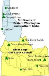 | Keywords: Idaho-gsusa.svg Girl Scout Councils in Idaho own Originally uploaded on en wikipedia 12-29-2008 Uploaded on Commons at 2012-03-20 17 19 40 UTC /Originally uploaded at 2008-12-30 01 01 21 Emma Pease Transferred by evrik/Originally uploaded by Erp Erp en en Category Girl Scouts of the USA Council maps Original upload log page en wikipedia Idaho-gsusa svg Upload date User Bytes Dimensions Comment 2008-12-30 01 01 21 Erp 131540 5061×7805 <small><nowiki> Girl Scout Councils in Idaho my work based on the wikipedia county map 12-29-2008 Emma Pease </nowiki></small> Scouting in Idaho Girl Scouts of the USA Council maps |