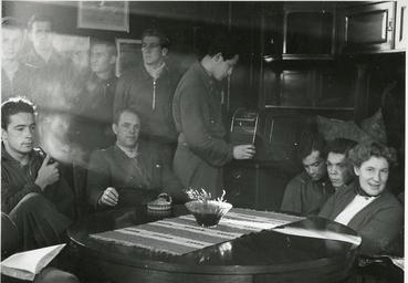 | Keywords: idrett andre verdenskrig andreverdenskrig nordmenn i sverige under krigen nordmennisverigeunderkrigen 2. verdenskrig 2verdenskrig sport okkupasjonstiden people groupshot indoor blackandwhite black and white Norsk idrettsliv i Sverige Et norsk idrettsinstitutt på Bosöen i Stockholms skjærgård har ved forskjellige anledninger blitt stilt til disposisjon for det norske idrettskontoret i Stockholm. Bildet er tatt under et kurs for utdannelse av idrettsinstruktører. En del av deltagerne hører i dagligstuen radionyhetene fra London. Stockholm 24.1.45 S 5395 Norsk idrettsliv i Sverige Et norsk idrettsinstitutt på Bosöen i Stockholms skjærgård har ved forskjellige anledninger blitt stilt til disposisjon for det norske idrettskontoret i Stockholm. Bildet er tatt under et kurs for utdannelse av idrettsinstruktører. En del av deltagerne hører i dagligstuen radionyhetene fra London. Stockholm 24.1.45 S 5395 |