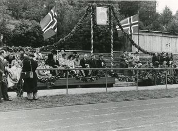 Keywords: idrett andre verdenskrig andreverdenskrig nordmenn i sverige under krigen nordmennisverigeunderkrigen 2. verdenskrig 2verdenskrig sport okkupasjonstiden outdoor blackandwhite black and white Fra det norske friidrettsstevne på Hjorthagen i Stockholm den 3. august 1942. Under bildet av kong Haakon sitter minister Jens Bull. På hans høyre side i rekkefølge: statsråd Støstad, oberstløytnant Smith-Kielland, handelsråd Aass, fru og herr kommandørkaptein Henriksen. RA/PA-1209/Uc/71/4/ S 948 Fra det norske friidrettsstevne på Hjorthagen i Stockholm den 3. august 1942. Under bildet av kong Haakon sitter minister Jens Bull. På hans høyre side i rekkefølge: statsråd Støstad, oberstløytnant Smith-Kielland, handelsråd Aass, fru og herr kommandørkaptein Henriksen. RA/PA-1209/Uc/71/4/ S 948