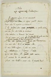 | Keywords: Idylls WDL10691.jpg Artwork ru Леопа ди Джакомо 1798 1837 fr Leopardi Giacomo 1798-1837 en Leopardi Giacomo 1798-1837 zh 贾科莫·莱奥帕尔迪,1798-1837 年 pt Giacomo Leopardi 1798-1837 ar ليوباردي، جياكومو، 1798-1837 es Leopardi Giacomo 1798-1837 ru Идиллии fr Idylles en Idylls zh 田园诗 pt Idílios ar القصائد الرعوية ru ЭЭта укопись х анящаяся в ациональной библиотеке еаполя создана великим итальянским поэтом Джакомо Леопа ди 1798 1837 а ее ст аницах авто уп ажнялся в написании своих <em> Идиллий </em> Рукопись п едставляет собой б ошю у с азлинованными ст аницами на кото ых четким и овным поче ком поэта записан че новой ва иант Идиллий ит <em> Idilli </em> сочиненных в пе иод с 1819 по 1821 годы В нее входят следующие п оизведения <em> La ricordanza </em> Воспоминание кото ое позже было пе еименовано в <em> Alla luna </em> К луне ; <em> L Infinito </em> Бесконечность ; <em> Lo spavento notturn </em> очные ст ахи ; <em> Sera del giorno festivo </em> Вече п аздничного дня ; <em> Il sogno </em> Сон и <em> La vita solitaria </em> Одинокая жизнь Леопа ди сам называл свои стихотво ения идиллиями и ст емился с их помощью изоб азить ситуации чувства и исто ические п иключения своей души Его читатель узнает об одиночестве как способе обновления и убежище от заблуждений с кото ыми п иходится ми иться человеку <em> La vita solitaria </em> Он становится свидетелем беседы поэта с луной кото ая в безмолвном постоянстве взи ает на него с неба и восп инимается как символ женственности и п истального внимания далекого таинственного существа <em> Alla luna </em> В одном из своих п оизведений авто вы ажает боль от не азделенной любви к женщине не подоз евающей о том что она стала п ичиной его ст аданий и азмышляет о в емени и исто ии Это подводит томимого одиночеством и азоча ованием поэта находящегося на г ани между жизнью и сме тью еальностью и небытием к воспоминаниям о п ек асных событиях п ошлого и ностальгии по далекому детству <em> Sera del giorno festivo </em> Самым значимым тво ением Джакомо Леопа ди во всем сбо нике <em> Idilli </em> стало стихотво ение <em> L Infinito </em> написанное в 1819 году В этот пе иод поэт находился в глубокой деп ессии кото ая п ивела его буквально на г ань самоубийства и в то же в емя стимули овала его пот ебность в тво честве как источнике спасения <em> L Infinito </em> п едставляет собой кульминационную точку в поэзии Леопа ди п ивлекая внимание ученых к итиков и поэтов во всем ми е <br>Итальянская поэзия; Поэзия fr Connu comme le « cahier d'ébauches des <em>Idylles</em> » ce manuscrit autographe de l'éminent poète italien Giacomo Leopardi 1798 1837 est conservé à la Bibliothèque nationale de Naples Il est composé d'un carnet avec des pages lignées où l'écriture de l'auteur apparaît clairement et nettement Ce carnet constitue la version préliminaire de l'ouvrage <em>Idilli</em> Idylles de Leopardi composée entre 1819 et 1821 Il inclut <em>La ricordanza</em> Le souvenir œuvre qui fut ensuite intitulée <em>Alla luna</em> la lune <em>L'Infinito</em> L'infini <em>Lo spavento notturno</em> L'épouvante nocturne <em>Sera del giorno festivo</em> Le soir du jour de fête <em>Il sogno</em> Le songe et <em>La vita solitaria</em> La vie solitaire Avec ces poèmes appelés « idylles » par Leopardi lui-même l'auteur souhaitait exprimer « les situations les affections et les aventures historiques » de son âme Le lecteur découvre ce qu'est la solitude considérée à la fois comme la source de régénération et un refuge permettant d'échapper aux désillusions que les êtres humains doivent endurer <em>La vita solitaria</em> Il dialogue avec la Lune présence silencieuse et continue avec laquelle le poète interagit et l'associe au symbole de la féminité et au regard fixe d'une altérité distante <em>Alla luna</em> L'auteur exprime également la douleur d'un amour non partagé pour une femme celle-ci ignorant qu'elle est la cause des sentiments du poète Puis il médite sur le temps et l'histoire Le poète alors bouleversé isolé et seul à la limite entre la vie et la mort et la réalité et le néant est amené à contempler la gloire des âges passés suscitant la nostalgie de son enfance <em>Sera del giorno festivo</em> <em>L'Infinito</em> poème le plus emblématique des <em>Idylles</em> fut écrit en 1819 année lors de laquelle le poète connut un état profond de mélancolie le menant presque au suicide mais qui en même temps lui fit réaliser que 