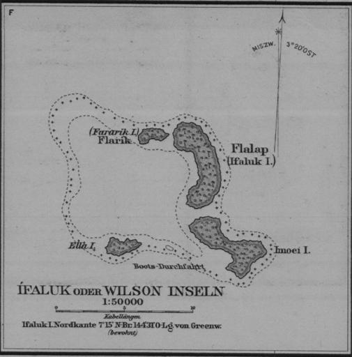 | Keywords: Ifaluk.jpg en Ifaluk Atoll eastern Yap State Caroline Islands Federated States of Micronesia Pacific Ocean http //greif uni-greifswald de/geogreif/geogreif-content/upload/Wilsoninseln jpg found through http //greif uni-greifswald de/geogreif/ map_sek Pazifischer+Ozean Author 1899 Maps of Yap Ifalik PD-old |