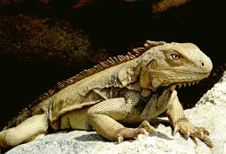 Keywords: iguana caribbean reptile scale lizard head claw creature iguana brown nature scaly rock dragon close