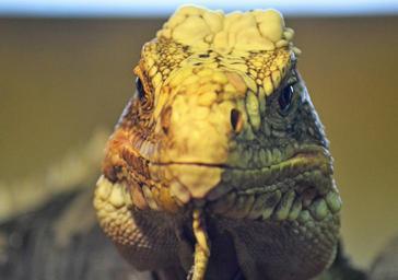 Keywords: iguana lizard head front view cold blooded herbivore dewlap animal adult scaly close-up detail