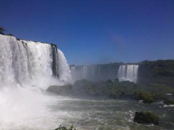 Keywords: iguazu falls water paraná the iguaçu river foz do iguaçu cataracts brazil nature tourism sol ride holidays trip landscape sky forest rio blue