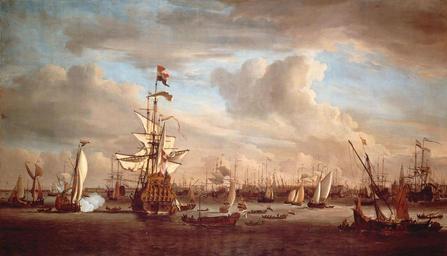 | Keywords: IJ Gouden Leeuw 1700.jpg The IJ at Amsterdam with the former flagship 'Gouden Leeuw' Willem van de Velde II jpg Artwork Creator Willem van de Velde II LangSwitch Cornelis de Tromp's former flagship the 'Gouden Leeuw' on the IJ in front of Amsterdam <ref>http //www rkd nl/rkddb/dispatcher aspx action search database ChoiceImages search priref 9826 RKDimages Art-work number 9826 title translated by Wikimedia Commons </ref> Het voormalige vlaggeschip van Cornelis Tromp de 'Gouden Leeuw' op het IJ voor Amsterdam <ref>http //www rkd nl/rkddb/dispatcher aspx action search database ChoiceImages search priref 9826 RKDimages Kunstwerknummer 9826 </ref> Alternate titles Het IJ voor Amsterdam met de 'Gouden Leeuw' het voormalige vlaggeschip van Cornelis Tromp <ref>http //www geheugenvannederland nl/ /nl/items/RIJK01 SK-C-7 Het IJ voor Amsterdam met de 'Gouden Leeuw' het voormalige vlaggeschip van Cornelis Tromp - het Geheugen van Nederland </ref> <br />De Gouden Leeuw op het IJ voor Amsterdam 1686 oil canvas cm 179 5 316 Institution Amsterdam Museum LangSwitch Signed and dated bottom centre on a piece of driftwood Gesigneerd en gedateerd middenonder op een stuk drijfhout W v Velde J 1686 Object history by 1808-03-07 Vergaderzaal van de oppercommissarissen der Walen Schreierstoren Amsterdam transfer LangSwitch Town Hall Stadhuis Amsterdam - 1808-08-15 1975 loan Rijksmuseum SK-C-7 Amsterdam SA 7421 Amsterdam www geheugenvannederland nl http //www geheugenvannederland nl/ /en/homepage Home http //www geheugenvannederland nl/ /en/items/RIJK01 SK-C-7 Info http //resolver kb nl/resolve urn urn gvn RIJK01 SK-C-7 role image size large Pic SA 7421 Other versions Van de Velde Gouden Leeuw 1686 jpeg Version from www wga hu The IJ at Amsterdam with the former flagship 'Gouden Leeuw' Willem van de Velde II jpg PD-old-100 LangSwitch Hinweis References Notes Noten <references /> Willem van de Velde II 1686 De Gouden Leeuw ship 1666 |
