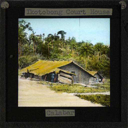 | Keywords: "Ikotobong Court House, Calabar", late 19th century (imp-cswc-GB-237-CSWC47-LS2-045).jpg en <br> Ikotobong Court House Calabar late 19th century Exterior view of the Ikotobong Court House The house has clay walls and a thatched roof There is a second building in the background to the right of the court house ; In 1889 the British Government established a Protectorate in Calabar In 1905 Mary Slessor a Scottish Missionary settled in Ikotobong and was appointed Vice-president of the native court Photographer Unknown Subject personal name Slessor Mary Mitchell 1848-1915 Filename imp-cswc-GB-237-CSWC47-LS2-045 tif Coverage date before 1915 Part of collection International Mission Photography Archive ca 1860-ca 1960 Type images Part of subcollection Photographs from the Centre for the Study of World Christianity University of Edinburgh U K ca 1900-ca 1940s Repository name Centre for the Study of World Christianity Archival file impaunpub_Volume7/1319 url Repository address The University of Edinburgh School of Divinity New College Mound Place Edinburgh EH1 2LX United Kingdom Geographic subject country Nigeria Format aacr2 1 lantern slide 8 x 8 cm Geographic subject continent Africa Rights Contact the repository for details Part of series Mary Slessor LS2 Repository email divinity-CSWC ed ac uk Subject lcsh Keyword Justice Administration of; Village communities Date created circa 1880 Publisher of the digital version University of Southern California Libraries Subject aat genre exterior views Format aat lantern slides Legacy record ID impa-m68189 Access conditions http //www ed ac uk/schools-departments/divinity/research/centres/world-christianity/collections-resources File GB 237 CSWC47/LS2/45 1880 author http //digitallibrary usc edu/cdm/ref/collection/p15799coll123/id/64441 PD-old-70-1923 Magic lantern images Images from USC Digital Library uploaded by Fæ International Mission Photography Archive ca 1860-ca 1960 Calabar |