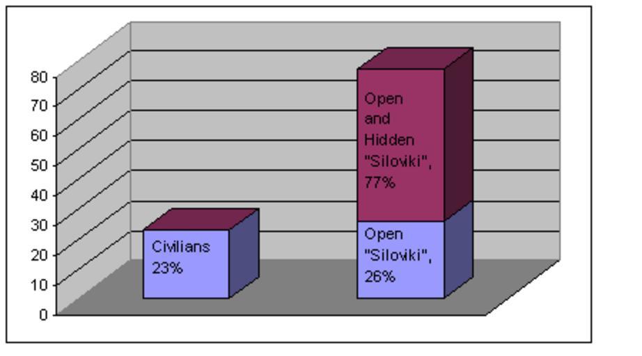 Keywords: IllarionovBureaucratSilovikiPercentage.PNG Professional affiliations of the government workers in modern Russia according to en Andrey Illarionov own 2007-05-08 Alex Bakharev based on slide 7 from http //www iea ru/article/corp_country/12_04_07_1 ppt Illarionov presentations |