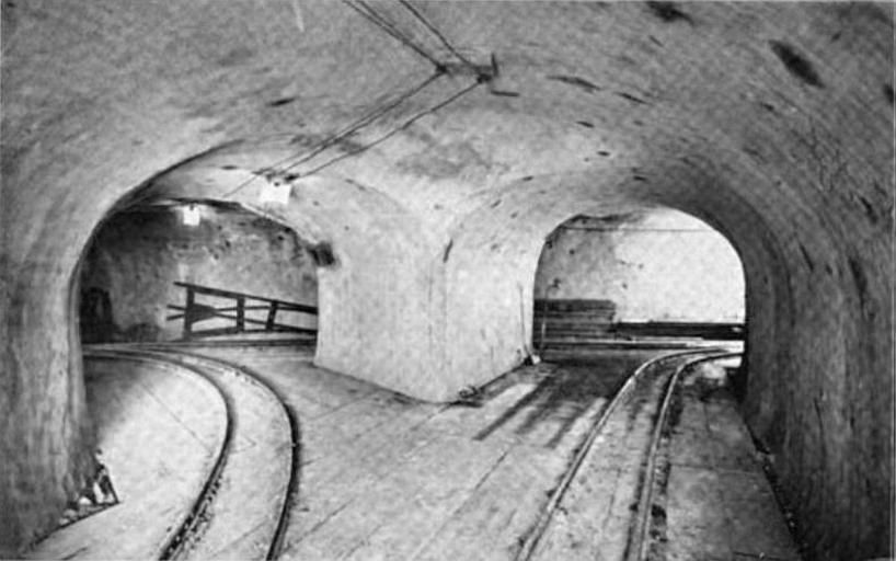 | Keywords: IllinoisTunnelCongressFranklin.jpg en Original Captions Western Three-way Intersection at Congress and Franklin Streets and inscribed along bottom 9148 4-27-02 Shaft No 8 Congre unreadable ; Pages THREE_WAY INTERSECTION AT CONGRESS AND FRANKLIN STREETS The captions are misleading; using the 1902 tunnel map as a reference this must be a view west along Congress toward the intersection with Market St now Wacker Dr For scale the track in the photos is 14 inch gauge The image is a composite of the two published sources to eliminate artifacts from printing and scanning George W Jackson Scope Extent and Construction of the Underground Conduits of the Illinois Telephone and Telegraph Co in Chicago http //books google com/books id DJ4PAQAAIAAJ pg PA498 Journal of the Western Society of Engineers Vol VII No 5 Oct 1902 ; page 498 Also published in George W Jackson Underground Conduits in Chicago http //books google com/books id jz4AAAAAMAAJ pg PA317 Page's Magazine Vol II No 4 April 1903 ; page 317 George W Jackson died 1922 Created 1902-04-27; first published 1902-10 41 52 33 74 N 87 38 9 17 W region US_heading WSW Geolocation derived from 1902 tunnel map Chicago Tunnel Company 1902 in Chicago PD-old |