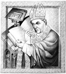 | Keywords: Illuminated Manuscripts (Middleton) figure00.jpg Frontispiece from <i>Illuminated Manuscripts in Classical and Mediaeval Times their Art and their Technique</i> Painting on panel by a fifteenth century artist of the Prague school; it represents St Augustine as an Episcopal scribe The background and the ornaments of the dress are stamped in delicate relief on the gesso ground and then gilt This picture which is now in the Vienna Gallery was originally part of the painted wall-panelling in the Chapel of the Castle of Karlstein https //archive org/details/illuminatedmanu00midd 1892 J Henry Middleton PD-old-100 Illuminated_Manuscripts_ Middleton Miniatures of Augustinus |
